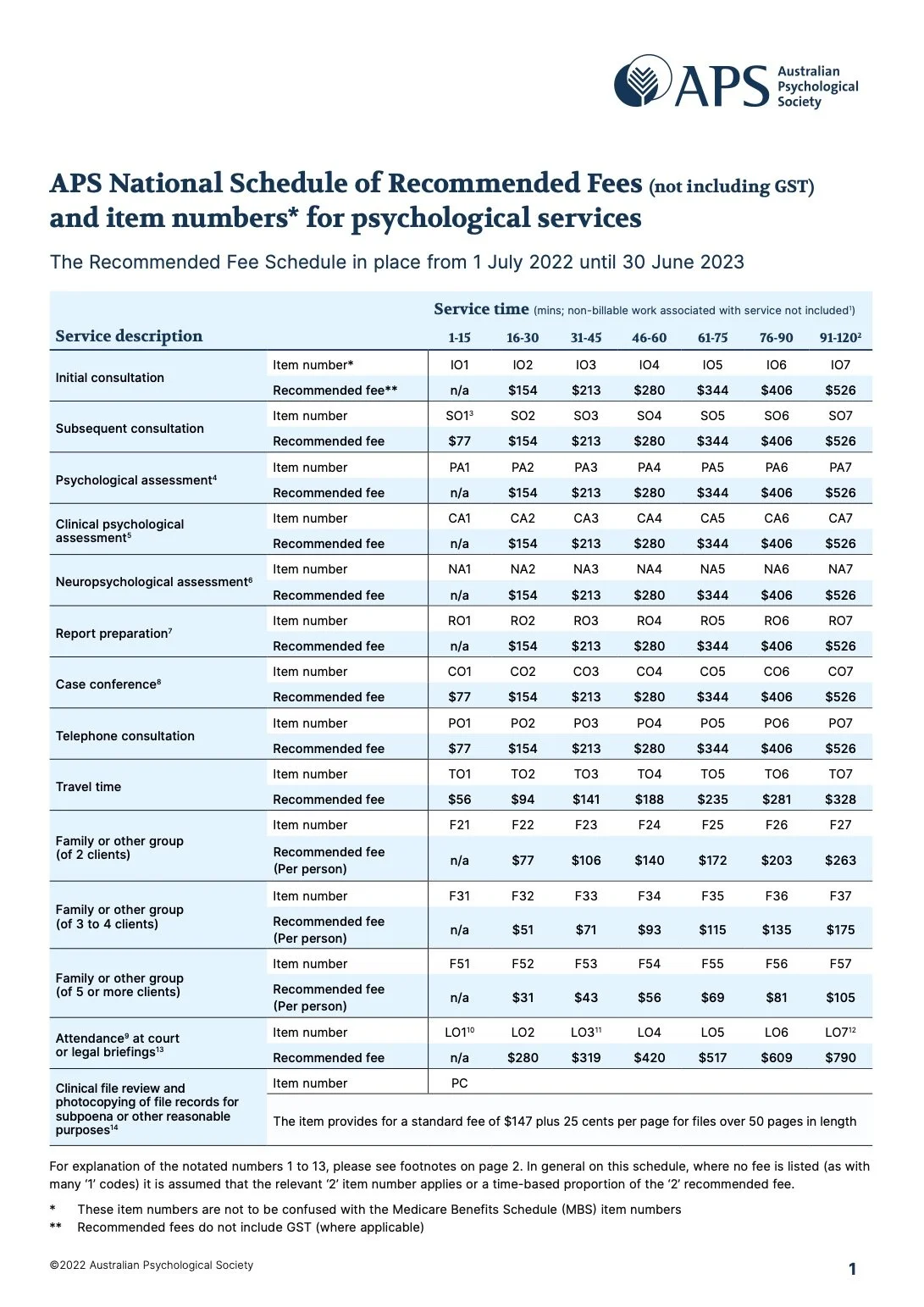 Our session fees are below the recommended Australian Psychological Society National Schedule of Recommended Fees for psychological services.